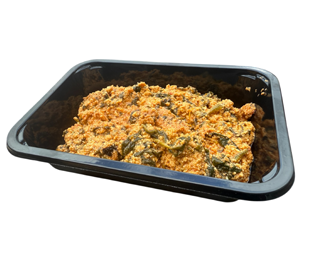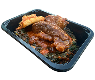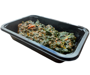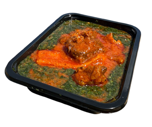 Riro literally means "to mix" - so efo riro literally translates to a "mixed spinach" The base is made with red bell peppers, habanero peppers, onions and tomatoes. Select 3 meats of your choice. - Delivered frozen.