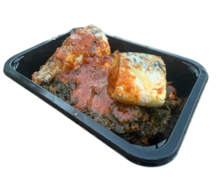 Riro literally means "to mix" - so efo riro literally translates to a "mixed spinach" The base is made with red bell peppers, habanero peppers, onions and tomatoes. Select 2 pieces of fish. - Delivered frozen.